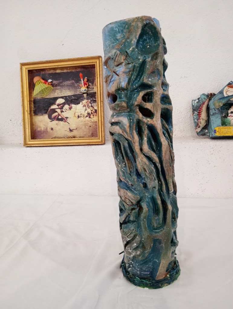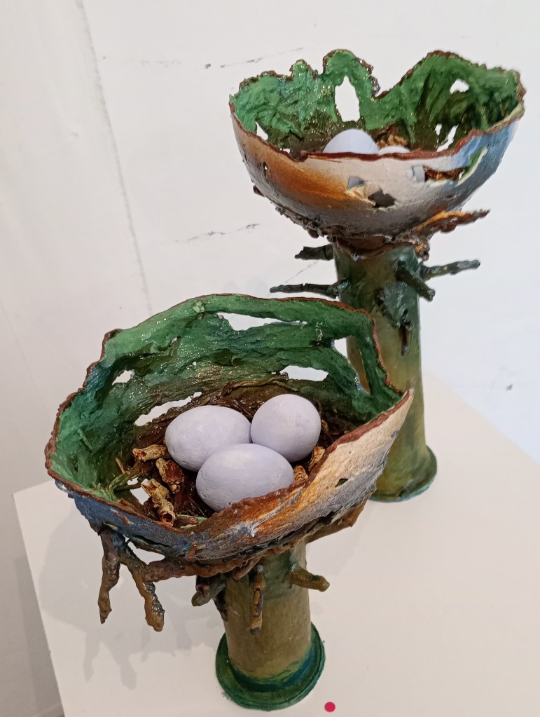 « J’utilise la pâte à papier, me permettant de trouver les surfaces organiques et tactiles. Ce médium étant poreux, il n’y a pas de risque d’emprisonner l’air. Contrairement aux techniques traditionnelles de céramique. Cela m’encourage à apporter une réponse plus ludique. »