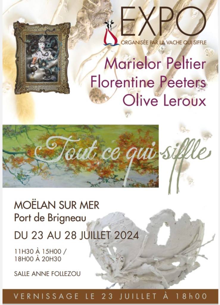 Expo organisée par La Vache qui Siffle au port du Brigneau, avec Florentine Peeters et Marielor Peltier. 23-28 juillet 2024. (Cliquez-ici pour le site Facebook de La Vache qui Siffle)